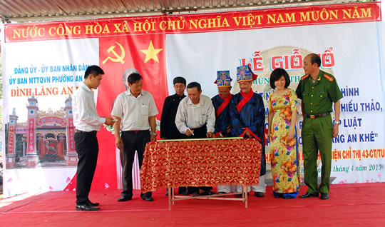 (Cadn.com.vn) - Hiện nay, đình làng An Khê (P.An Khê, Q.Thanh Khê, TP Đà Nẵng) có 4 tộc chính: Lê, Nguyễn, Phan, Văn và nhiều tộc khác như: Trần, Vĩ, Dương, Phạm. Nhằm đưa phong trào toàn dân BVANTQ phát triển một cách có chiều sâu và bền vững trong các tộc, họ thuộc đình làng An Khê, Đảng ủy, UBND phường đã xây dựng mô hình “Ông bà mẫu mực, con cháu hiếu thảo, không có con em vi phạm pháp luật thuộc đình làng An Khê”.