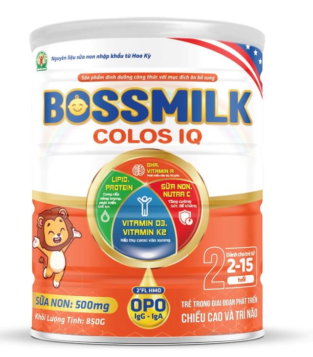 2, Sản phẩm dinh dưỡng công thức với mục đích ăn bổ sung dành cho trẻ từ 2- 15 tuổi Boss Milk Colos IQ 2