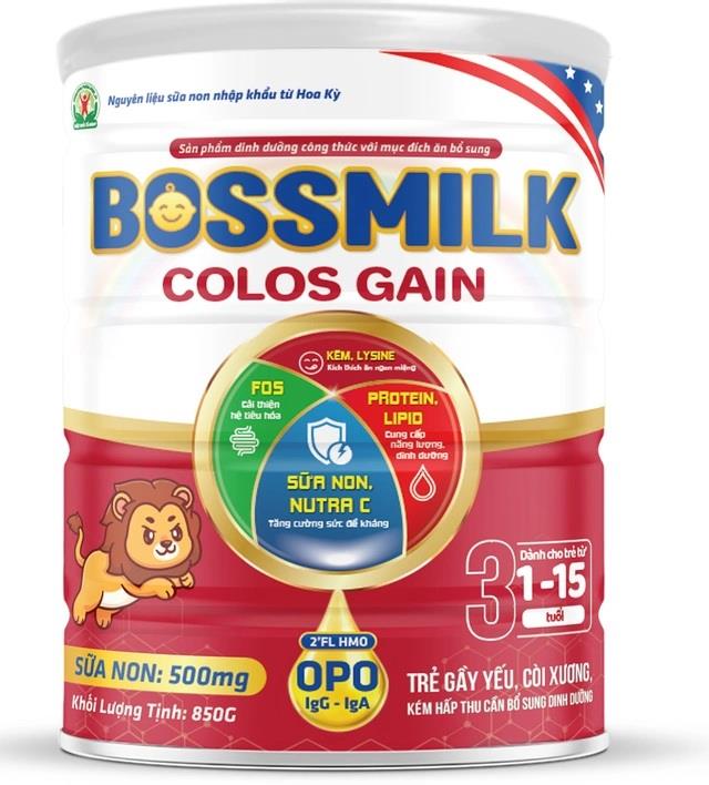 10, Sản phẩm dinh dưỡng công thức với mục đích ăn bổ sung dành cho trẻ từ 1-15 tuổi BOSSMILK COLOS GAIN 3