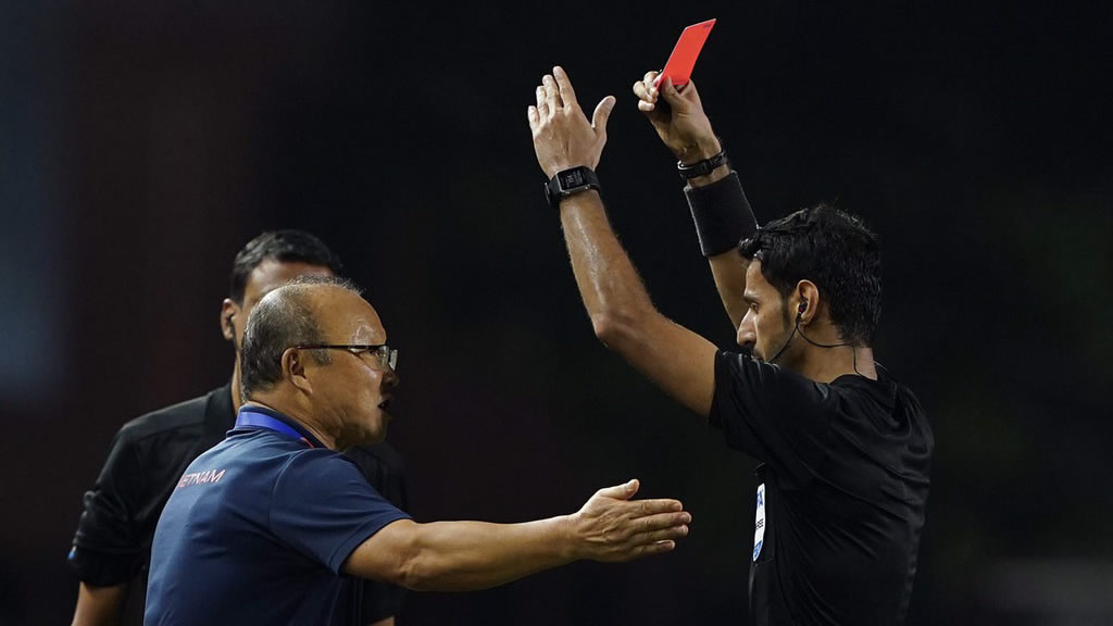 HLV Park Hang Seo nhận thẻ đỏ vì lỗi phản ứng với trọng tài. Ảnh Zing.vn |