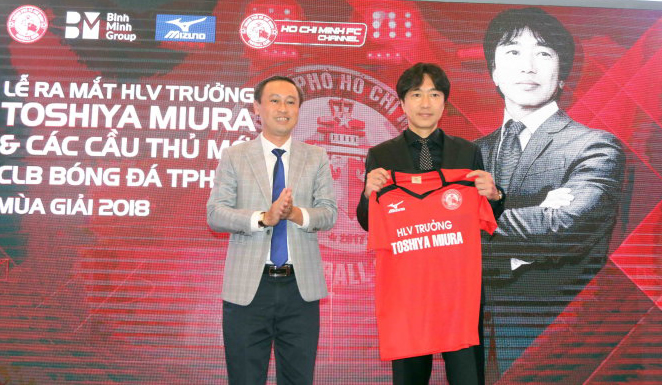 HLV Toshiya Miura, cựu HLV trưởng ĐT Việt Nam đã ký hợp đồng dẫn dắt CLB bóng đá TPHCM với thời hạn 2 năm. Buổi lễ ra mắt của CLB TPHCM diễn ra trưa 5-1. Trong thành phần Ban huấn luyện CLB TPHCM mùa bóng 2018, ngoài ông Miura còn có các trợ lý từng làm việc với ĐT Việt Nam như: Martin Forkel (chuyên gia thể lực), Võ Văn Hạnh (trợ lý thủ môn) và Trần Hùng Cường (trợ lý ngôn ngữ).