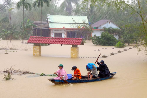 Người dân Quảng Nam chạy lụt. Ảnh: Nguyên Khôi |