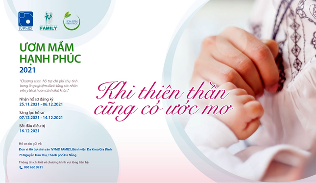 Bệnh viện Đa Khoa Gia Đình Đà Nẵng cho biết, chương trình Ươm Mầm Hạnh Phúc 2024 sẽ chính thức nhận hồ sơ đăng ký từ 11.10.2024 và bắt đầu quá trình điều trị vào ngày 11.11.2024 tại Đơn vị Hỗ trợ Sinh sản IVFMD FAMILY.