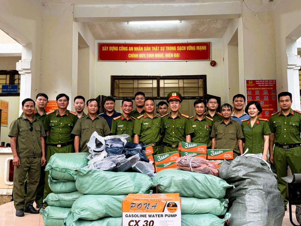 Thông qua lực lượng Công an, đoàn đã tặng nhân dân Nam Trà My 1,5 tấn gạo, 50 thùng mì ăn liền và 50 đôi ủng cao su để Công an xã hỗ trợ lực lượng ANTT cơ sở; đồng thời tặng 6 suất quà cho những hộ dân có hoàn cảnh đặc biệt khó khăn. Ngoài ra, CAP Hòa Xuân còn trao tặng Công an xã Nam Trà My 1 máy bơm kết hợp máy phát điện, giúp lực lượng Công an địa phương có thêm phương tiện phục vụ hiệu quả công tác cứu nạn, cứu hộ khi mưa bão xảy ra.