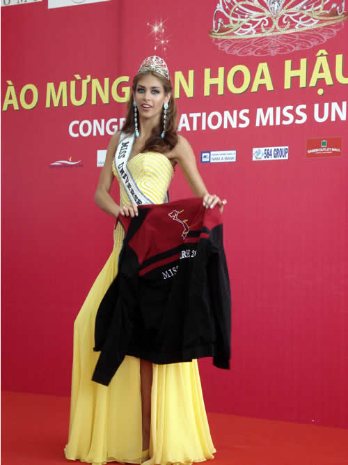 Lúc 11 giờ cùng ngày, tại Trung tâm báo chí của Diamond Bay, tân HHHV 2008 - Dayana Mendoza đã có cuộc tiếp xúc với báo chí. Trả lời các câu hỏi của phóng viên các báo, đài của quốc tế và Việt Nam, tân HHHV cho biết cô rất sung sướng và vinh dự khi được lựa chọn và trao danh hiệu cao quý này và sẽ có các hoạt động thiết thực giúp trẻ em nghèo, là nhịp cầu hòa bình giúp cho thế giới xích lại gần nhau để xứng đáng với sự lựa chọn và tin tưởng của Ban giám khảo và của công chúng.