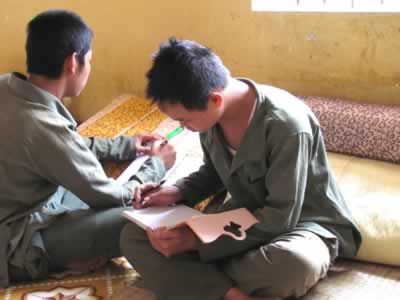 Đưa tôi xem hàng chữ vừa mới viết, Trần Văn Quang (1990, trú Chi Lăng, TP Huế, TT-Huế) không giấu được cảm giác ngại ngùng, hổ thẹn bởi chật vật mãi Quang mới viết được con chữ thật ngay ngắn. Lấy tay quệt mồ hôi, Quang bảo: “Em đã học xong lớp xóa mù rồi, em đã viết thư cho ba mẹ được rồi. Bọn em đứa mô cũng muốn được cô Tiến dạy nữa”. Cô Tiến chính là trung úy CA Trần Thị Tiến, cán bộ của cơ sở và phụ trách luôn chương trình xóa mù nhiều năm qua.