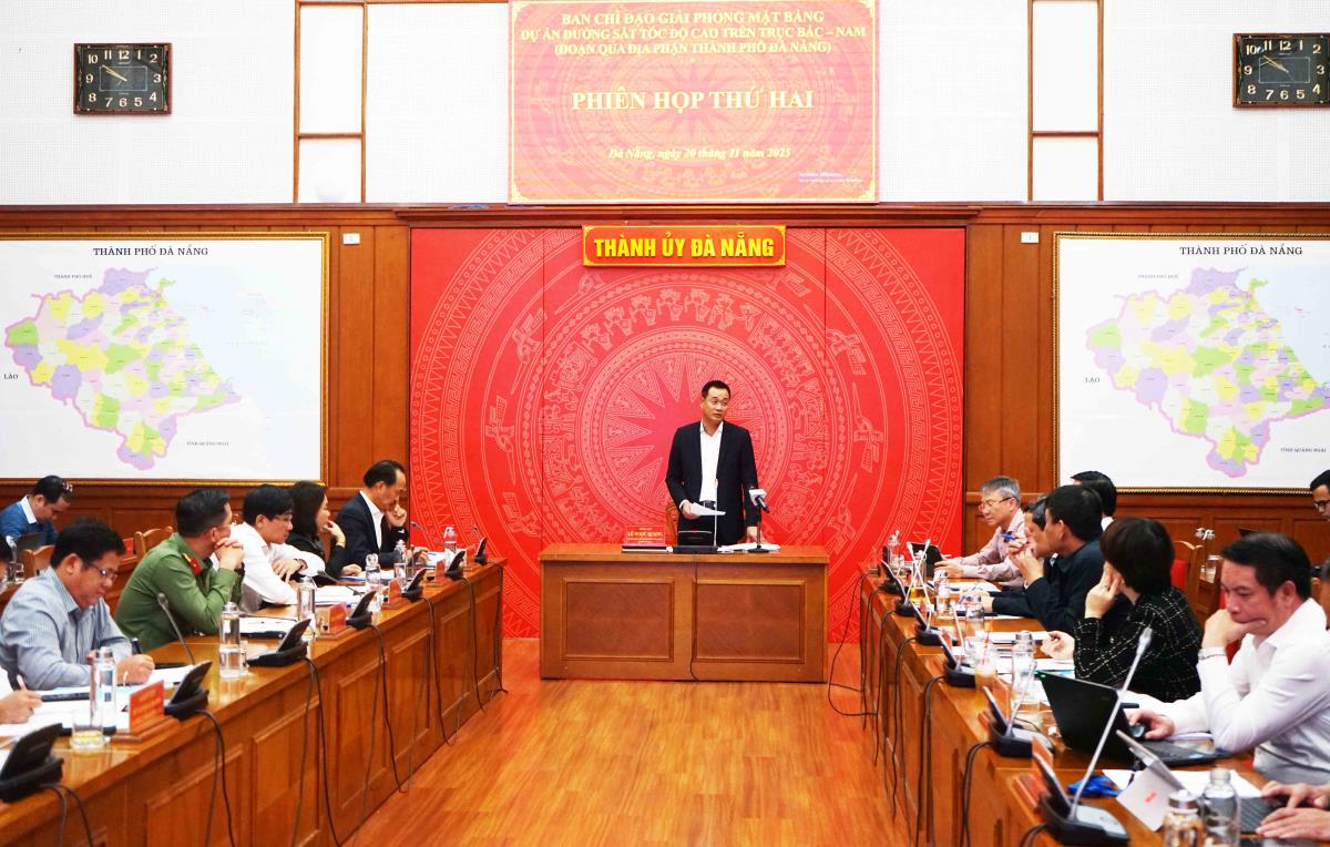 Sáng 20-11, Ban chỉ đạo Giải phóng mặt bằng (GPMB) Dự án (DA) đường sắt cao tốc (ĐSCT) Bắc Nam, đoạn qua TP Đà Nẵng đã họp bàn về công tác đền bù giải tỏa (ĐBGT), GPMB DA này dưới sự chủ trì của Ủy viên Trung ương Đảng, Bí thư Thành ủy Đà Nẵng Lê Ngọc Quang. Cùng dự họp có Phó Bí thư Thường trực Nguyễn Đình Vĩnh; Phó Bí thư Thành ủy, Chủ tịch HĐND TP Nguyễn Đức Dũng; Chủ tịch UBMTTQVN TP Lê Trí Thanh và lãnh đạo các sở, ban, ngành, địa phương có liên quan.