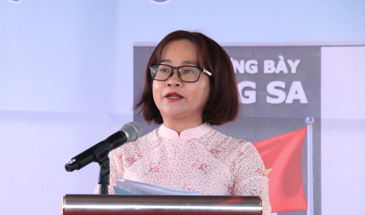 Bà Trần Thị Kim Hoa-Chủ tịch UBND đặc khu Hoàng Sa phát biểu tại buổi lễ.