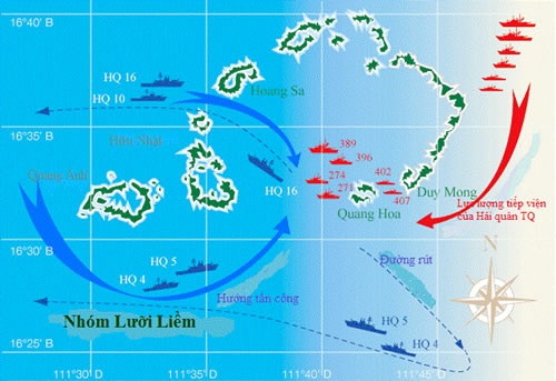 | Sơ đồ tác chiến trong trận hải chiến Hoàng Sa ngày 19-1-1974. |
