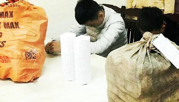 N. và Đ. cùng 2 bao pháo tự làm bị lực lượng CA thu giữ. |