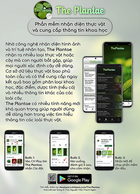 Với mong muốn giúp người dùng nhận diện và hỗ trợ các thông tin cũng như công dụng của các loài thảo mộc, thực vật, hai học sinh Trang Sĩ Thái và Nguyễn Trần Thanh Ngân, lớp 11B, Trường Trung học phổ thông Lý Tự Trọng (thành phố Nha Trang, tỉnh Khánh Hòa) đã sáng tạo ra phần mềm nhận diện và cung cấp thông tin khoa học của thực vật, tên tiếng Anh là The Plantae.