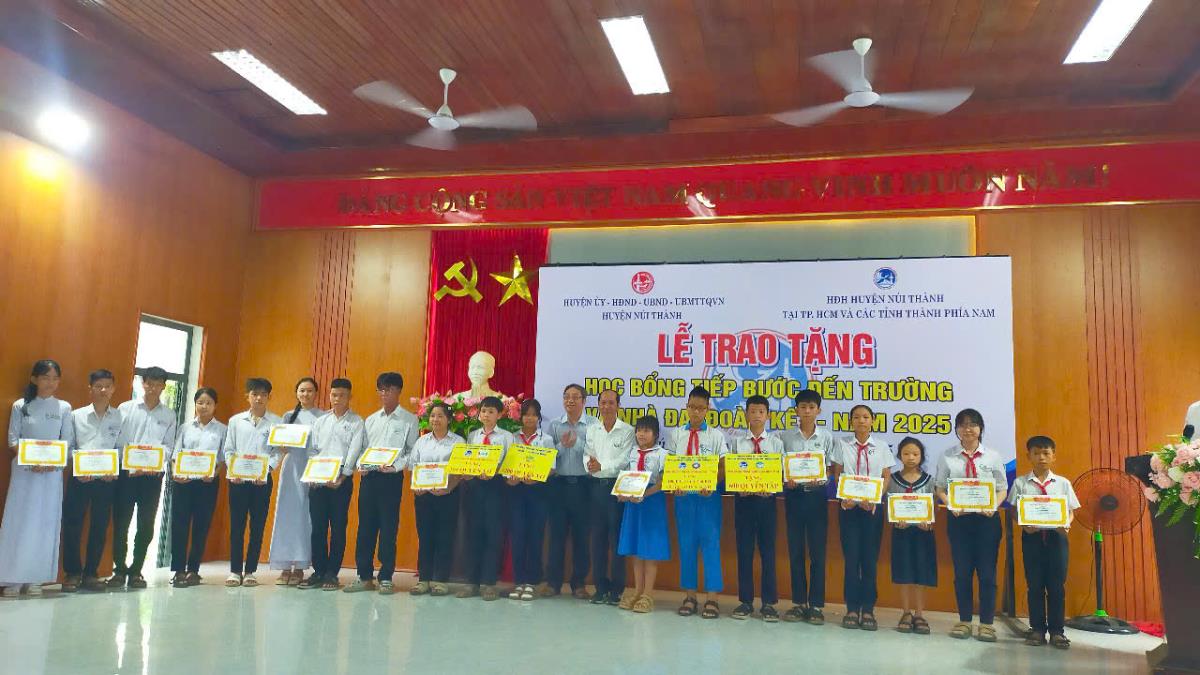 Cụ thể, HĐH huyện Núi Thành tại TP Hồ Chí Minh đã trao tặng 60 suất học bổng Tiếp bước đến trường cho các em học sinh vượt khó học tập trên địa bàn huyện; trao tặng 6 nhà Đại đoàn kết với tổng kinh phí 500 triệu đồng. Cùng đó, Đoàn đã trao 130 triệu đồng hỗ trợ sửa chữa nhà cho 4 hộ gia đình tại xã Tam Quang và Tam Anh Nam; đồng thời tặng 1 xe đạp điện chạy bằng pin và năng lượng mặt trời trị giá 20 triệu đồng cho người khuyết tật ở xã Tam Tiến.