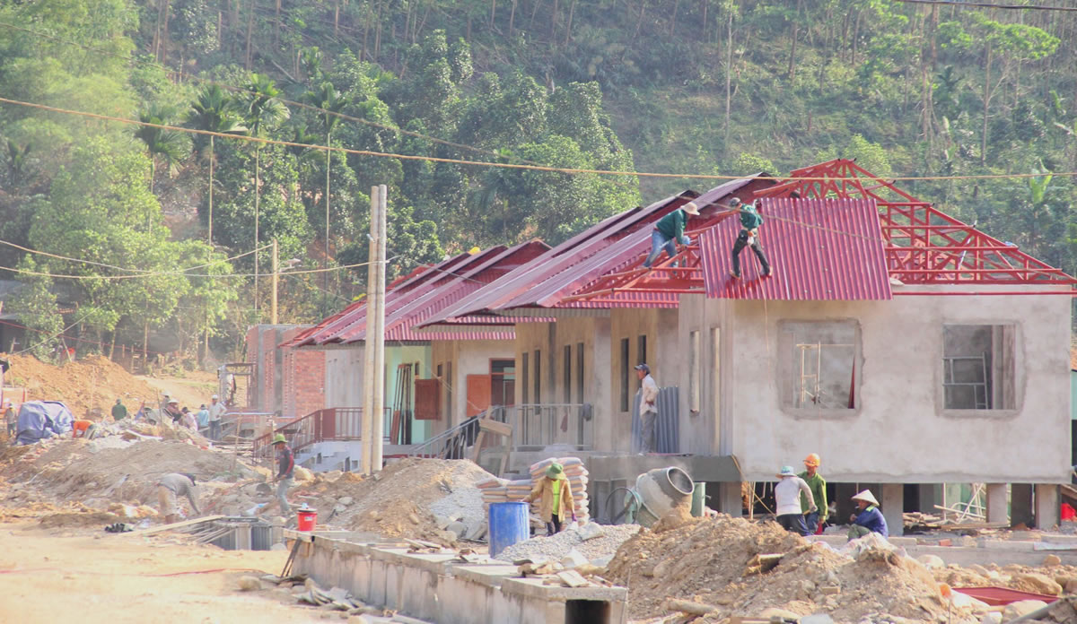Những ngày này, trên "đại công trường" khu tái định cư (TĐC) cho người dân xã Trà Leng (H. Nam Trà My, Quảng Nam), một không khí lao động hối hả, sôi nổi diễn ra. Hàng chục lao động làm việc với nhiều hạng mục khác nhau đang gấp rút đẩy nhanh tiến độ thi công, để kịp bàn giao cho người dân trước 30-4 sắp tới.