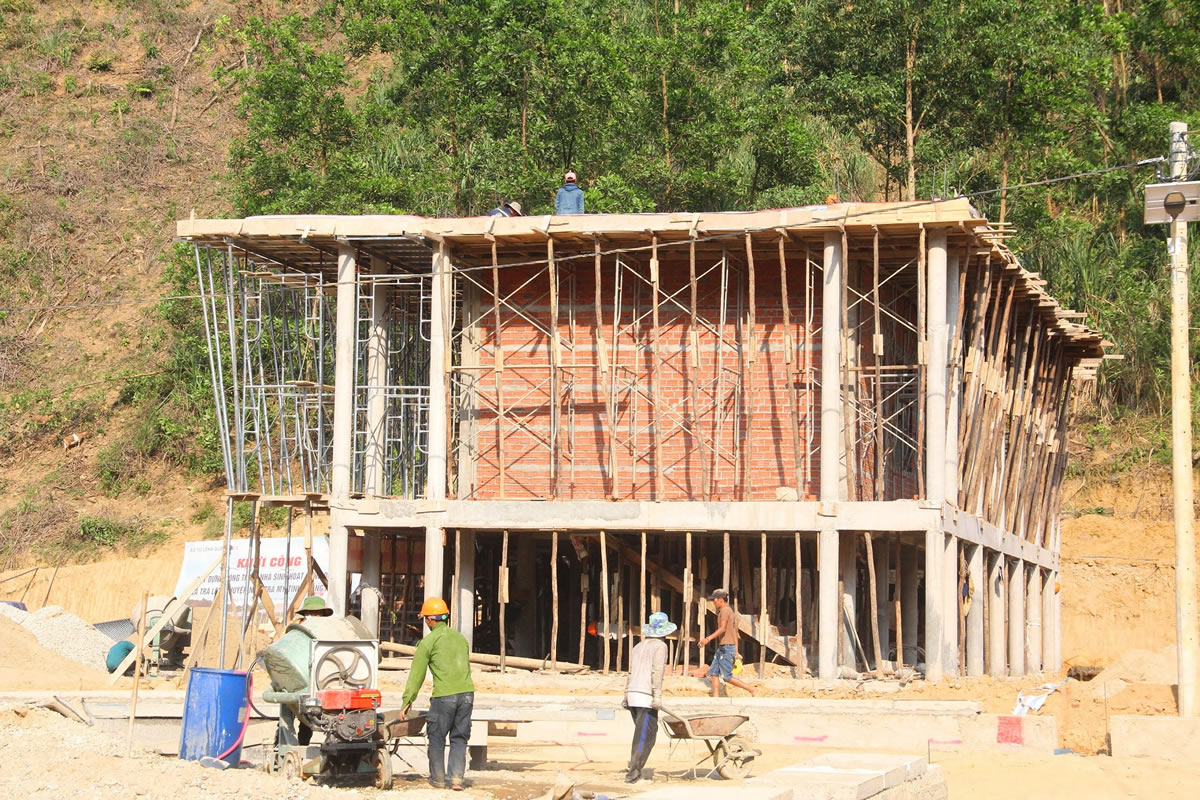 Nhà sinh hoạt cộng đồng tại khu TĐC Trà Leng đã cơ bản hoàn thành phần thô. |