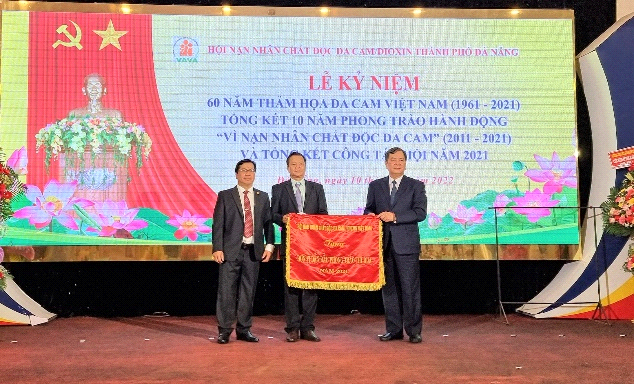 ĐÀ NẴNG- Sáng 10-1, Hội nạn nhân chất độc da cam/dioxin thành phố Đà Nẵng tổ chức Lễ kỷ niệm 60 năm thảm hoạ da cam Việt Nam, tổng kết 10 năm thực hiện phong trào hành động vì nạn nhân chất độc da cam giai đoạn 2011-2021 và kết quả hoạt động Hội năm 2021. Những năm qua, Đảng và chính quyền thành phố luôn quan tâm tạo điều kiện cho Hội nạn nhân chất độc da cam/dioxin thành phố Đà Nẵng phát triển, hoạt động có hiệu quả. Nguồn lực huy động rất lớn với tổng số tiền gần 150 tỷ đồng; năm 2021, mặc dù gặp nhiều khó khăn do ảnh hưởng của đại dịch Covid-19 nhưng Thành Hội cùng các cấp Hội đã vận động các nguồn lực huy động được hơn 11 tỷ đồng. Trong dịp này lãnh đạo Trung ương Hội Nạn nhân chất độc da cam/dioxin Việt Nam đã trao tặng lá cờ đầu phong trào thi đua năm 2021 cho Hội nan nhân chất độc da cam/dioxin Đà Nẵng.