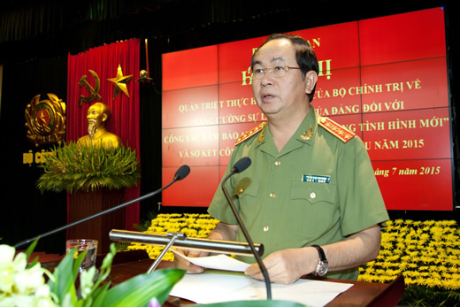 Phát biểu tổng kết Hội nghị, thay mặt Đảng ủy CATW, lãnh đạo Bộ Công an, Bộ trưởng Trần Đại Quang ghi nhận, biểu dương, đánh giá cao những kết quả, thành tích công tác mà Công an các đơn vị, địa phương đã đạt được trong 6 tháng đầu năm 2015; hoan nghênh các ý kiến đóng góp của đại biểu, Bộ trưởng nhấn mạnh thêm một số vấn đề sau: