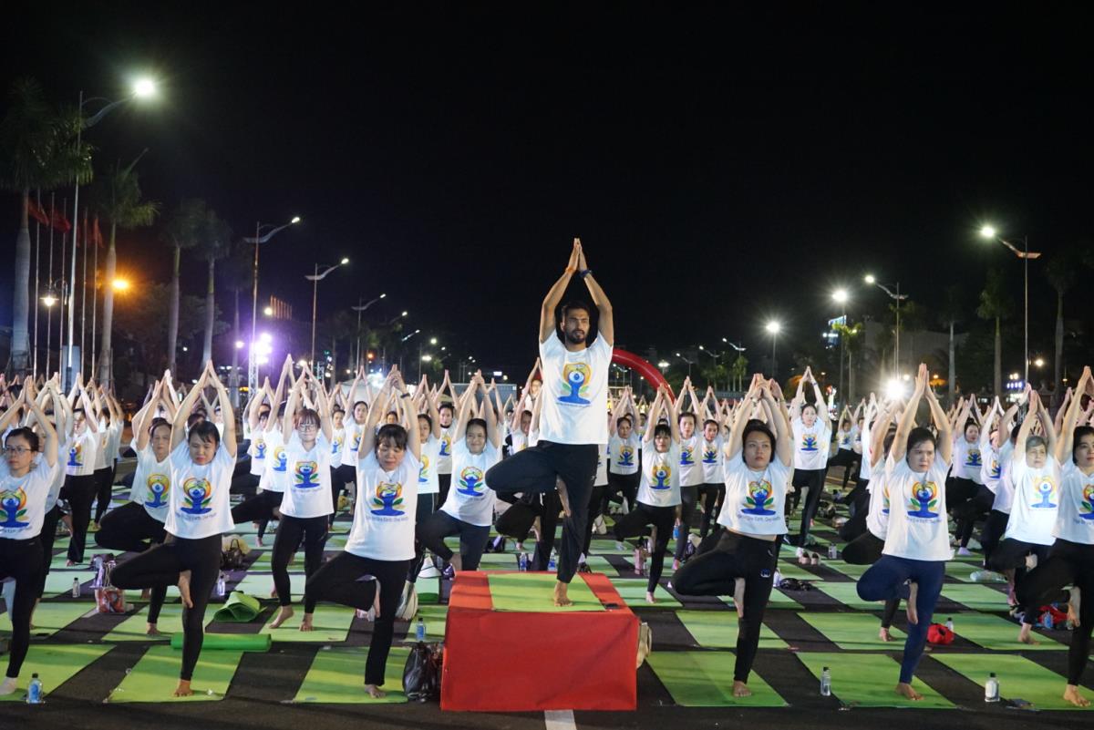 Điểm nhấn của chương trình là màn đồng diễn yoga của hơn 1.000 người đến từ 52 câu lạc bộ, trung tâm yoga tại Đà Nẵng và các địa phương lân cận, du khách quốc tế cùng tham gia. Những động tác mềm mại, uyển chuyển trên nền nhạc “Hello Việt Nam” đã lan tỏa mạnh mẽ thông điệp sống khỏe, sống hài hòa – vì một thế giới hòa bình và hữu nghị.