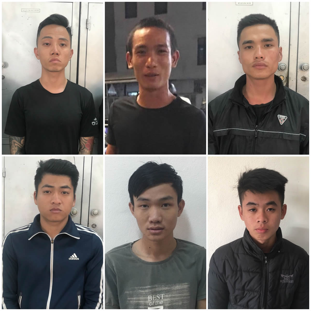 Đối tượng Võ Toàn Trung (ảnh đầu tiên bên trái) và 5 đối tượng đồng phạm. |