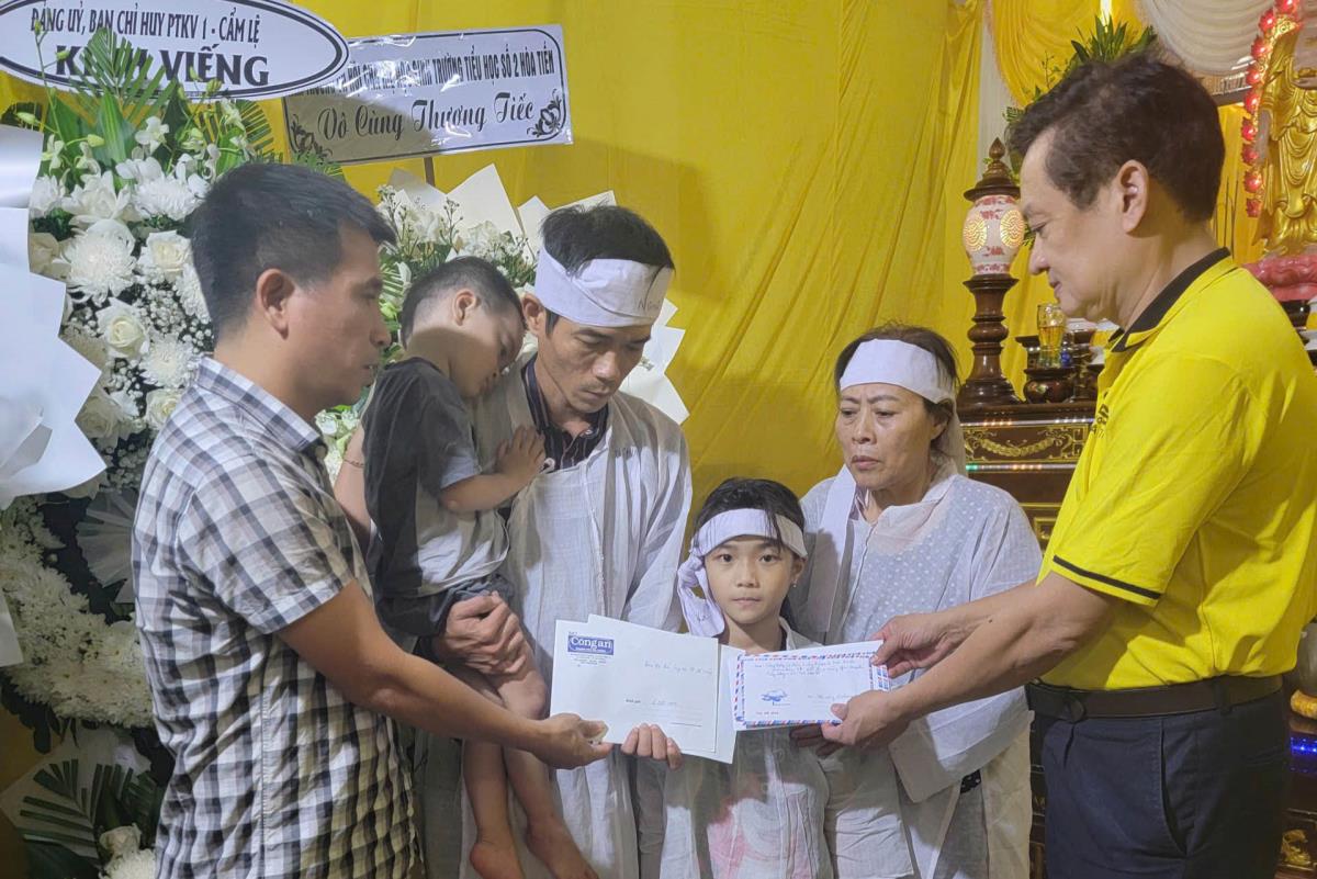 Ônng Lê Vinh Quang – Chủ tịch HĐQT Cty CP Vận tải và dịch vụ Phú Hoàng- Taxi Tiên Sa cũng đã thay mặt các bạn hữu tới viếng và trao tặng số tiền 20,5 triệu đồng góp phần chia sẻ khó khăn, mất mát của gia đình nữ công nhân.