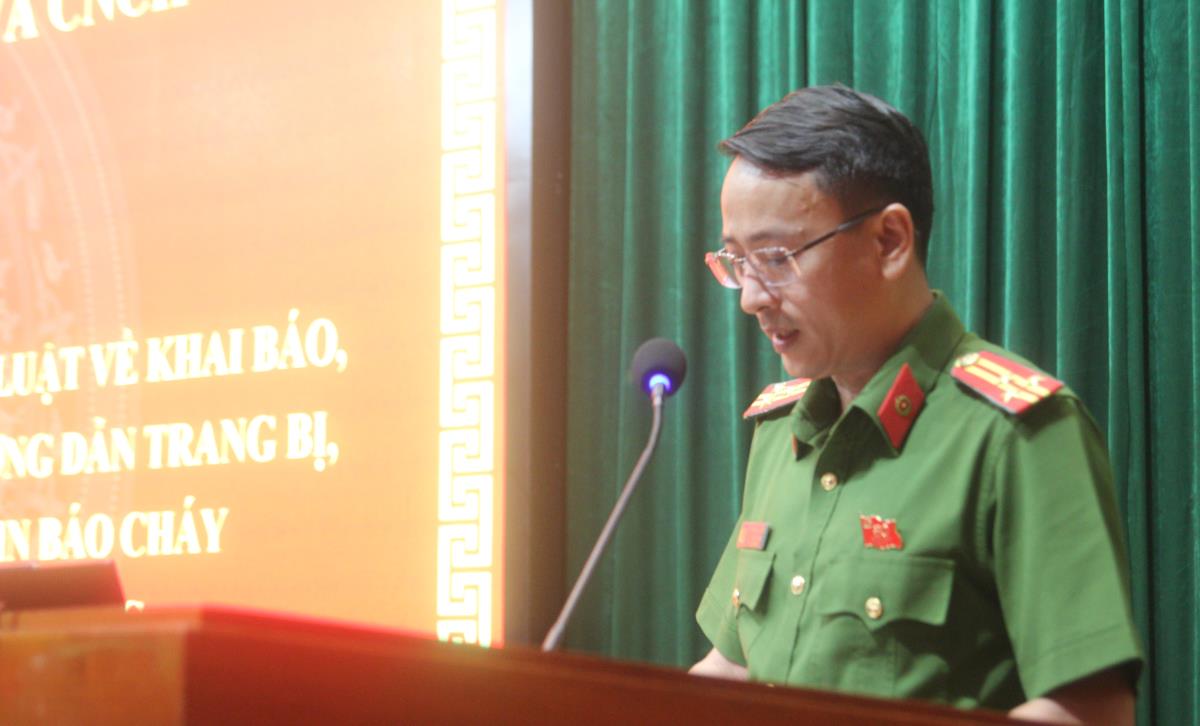 Thượng tá Trương Đức Thuận, Phó Trưởng Phòng Cảnh sát PCCC&CNCH Công an TP Đà Nẵng phát biểu tại buổi tập huấn.