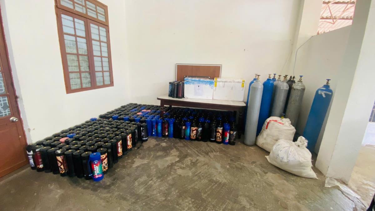 Kiểm tra trong kho hàng của quán, Công an phát hiện hàng chục chai rượu mang nhãn mác nước ngoài, hơn 350 bình kim loại chứa khí cười (N2O) cùng nhiều dụng cụ sử dụng shisha, bóng cười... Tuy nhiên, phần lớn số hàng hóa này không có giấy tờ chứng minh nguồn gốc xuất xứ; trong đó có mặt hàng thuộc danh mục cấm kinh doanh.