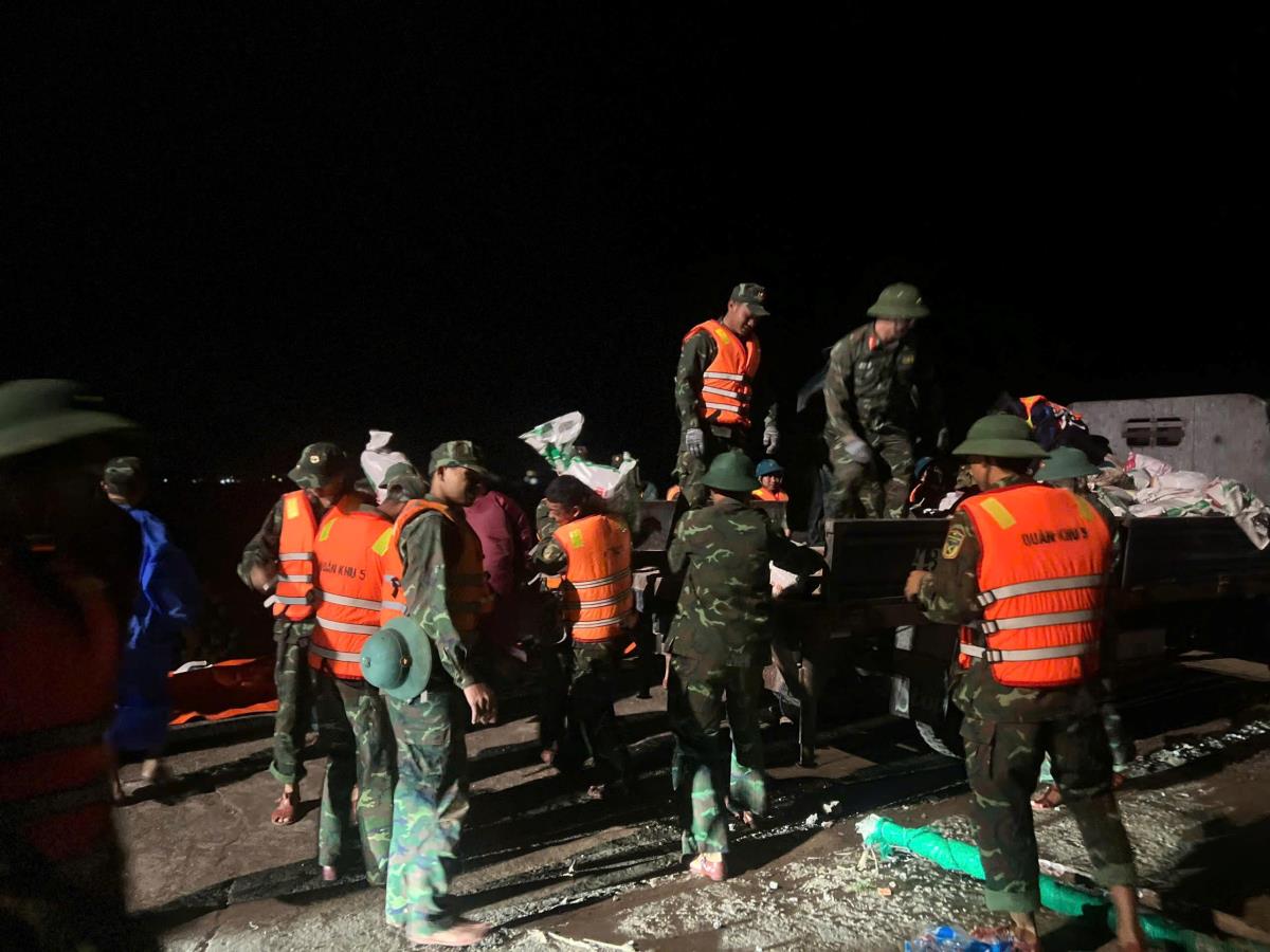 Hơn 500 CBCS lực lượng vũ trang Quân khu 5 cơ động trong đêm ứng cứu bờ kè An Lương