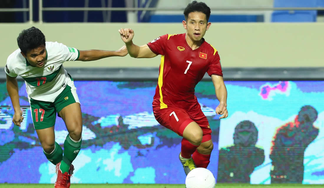 Hồng Duy thi đấu năng nổ nhất tuyển Việt Nam trong trận gặp tuyển Indonesia. |