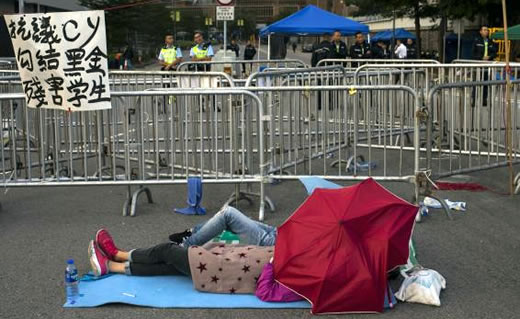 Từ hơn 100.000 người xúm xít quanh đường phố trung tâm Hồng Kông, giờ đây, chỉ còn khoảng vài chục sinh viên - những người “hình thành cốt lõi phong trào biểu tình” - chiếm một số đoạn của đường cao tốc, khiến giao thông trì trệ. Một người biểu tình vẫn ngái ngủ khi Hồng Kông bước vào giờ cao điểm.