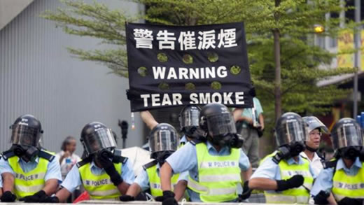 Chỉ vài giờ trước đó, không khí hỗn loạn vẫn bao trùm. Cảnh sát bắn đạn hơi cay nhằm vào người biểu tình, lần đầu tiên kể từ năm 2005, sau khi tiến hành trấn áp bằng dùi cui trong vụ bạo động tồi tệ nhất 2 thập niên qua. Người biểu tình bất chấp làn hơi cay và dùi cui, đứng vững tại trung tâm Hồng Kông. Một số vụ ẩu đả nổ ra giữa cảnh sát đội mũ chuyên dụng, mặt nạ chống khí độc và trang bị đồ chống bạo động, với người biểu tình tức giận trước việc bị bắn đạn hơi cay.