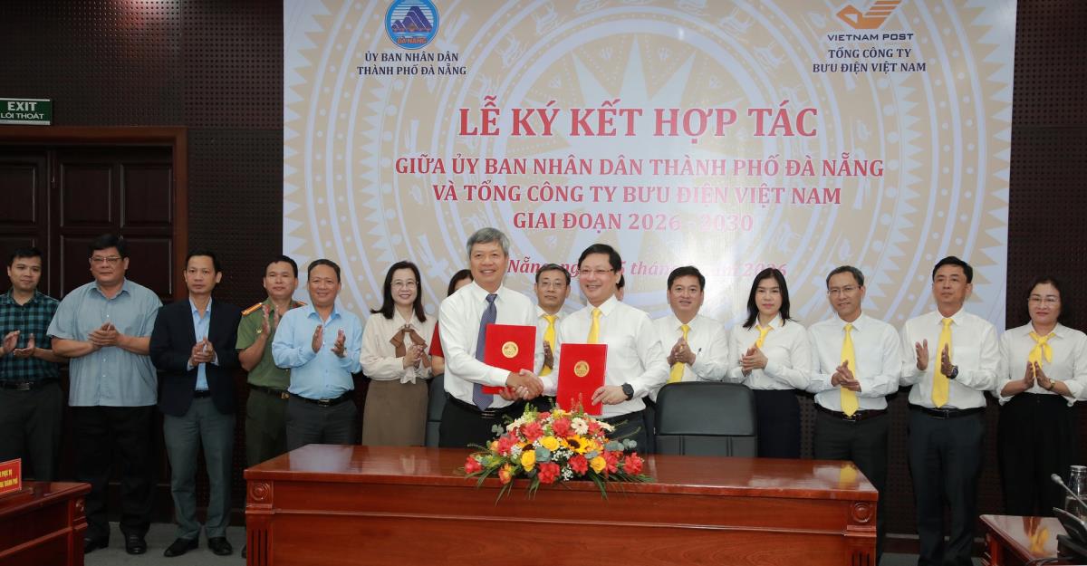 Sáng 25-3, UBND thành phố Đà Nẵng và Tổng Công ty Bưu điện Việt Nam tổ chức ký kết thỏa thuận hợp tác giai đoạn 2026 - 2030 nhằm tăng cường triển khai các nhiệm vụ phát triển kinh tế - xã hội, cải cách thủ tục hành chính và chuyển đổi số trên địa bàn thành phố.