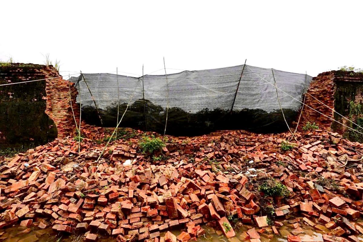 Một đoạn tường thành bị sập sau đợt thiên tai vừa qua.