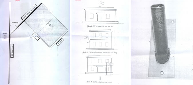 - Đối với các hộ gia đình có cổng mặt tiền thì cờ Tổ quốc được treo lên cổng. Đối với các hộ gia đình có tường nhà mà không có cổng thì treo cờ Tổ quốc lên tường mặt tiền nhà. Đối với các hộ gia đình nhà cao tầng, treo cờ Tổ quốc ở lan can tầng đầu tiên của mặt tiền nhà.