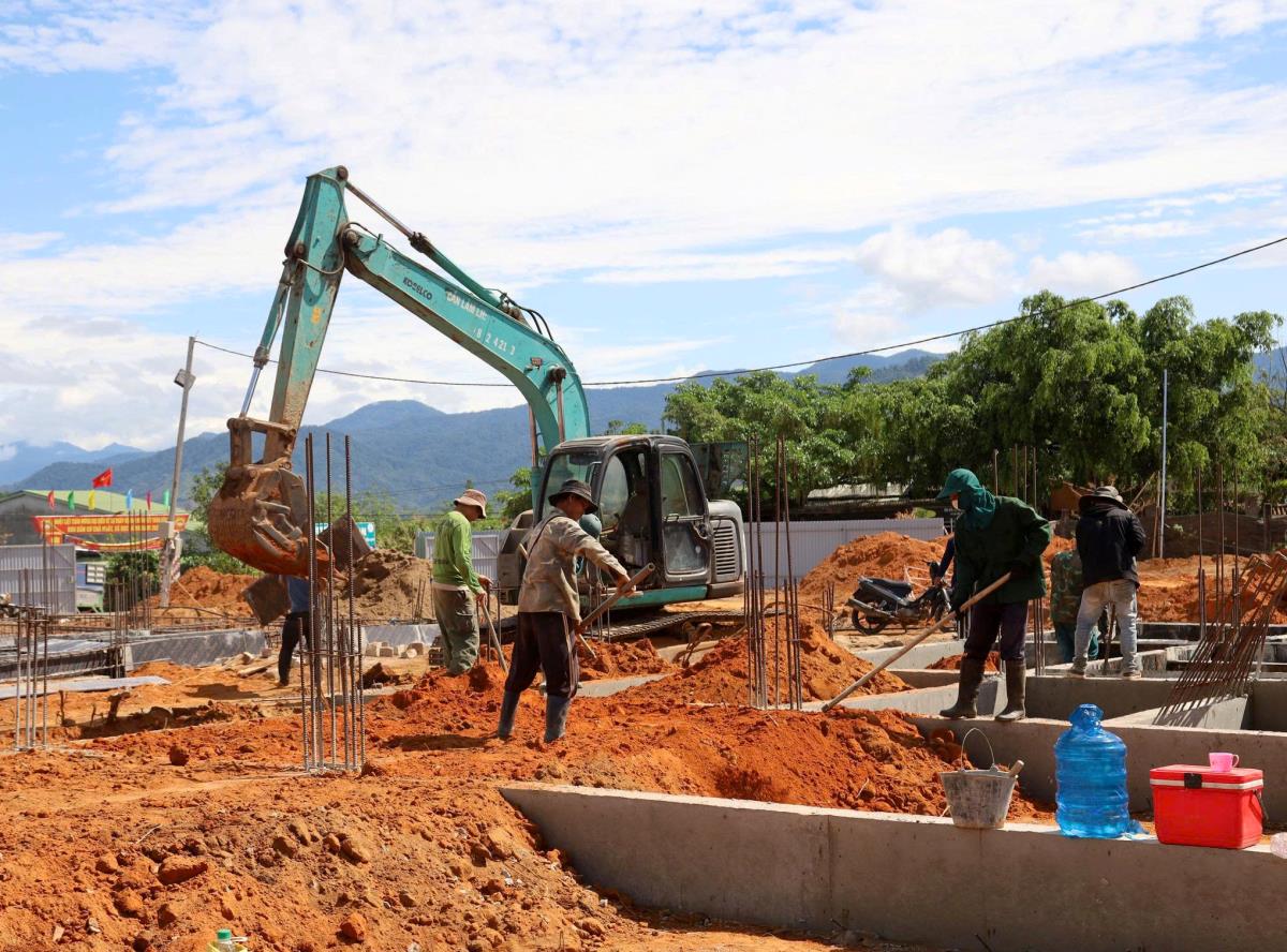 Không khí thi công tại các công trình trường phổ thông nội trú liên cấp Tiểu học – Trung học cơ sở (PTNTLC TH-THCS) ở các xã biên giới đất liền của tỉnh Quảng Ngãi đang diễn ra khẩn trương. Các nhà thầu huy động nhiều nhân lực, thiết bị tổ chức thi công liên tục, tăng ca để bảo đảm tiến độ hoàn thành vào cuối tháng 7-2026 theo kế hoạch.