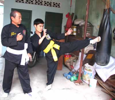 Võ sư Hồ Văn Giáo hướng dẫn môn sinh luyện tập. |