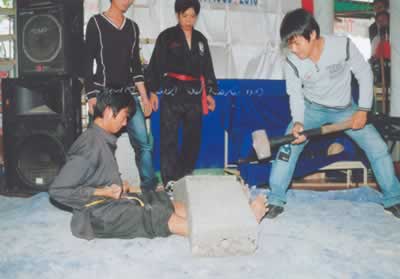 Biểu diễn công phá của CLB Bạch Hổ Lâm, chi nhánh tại Quảng Bình. Ảnh: H.T |
