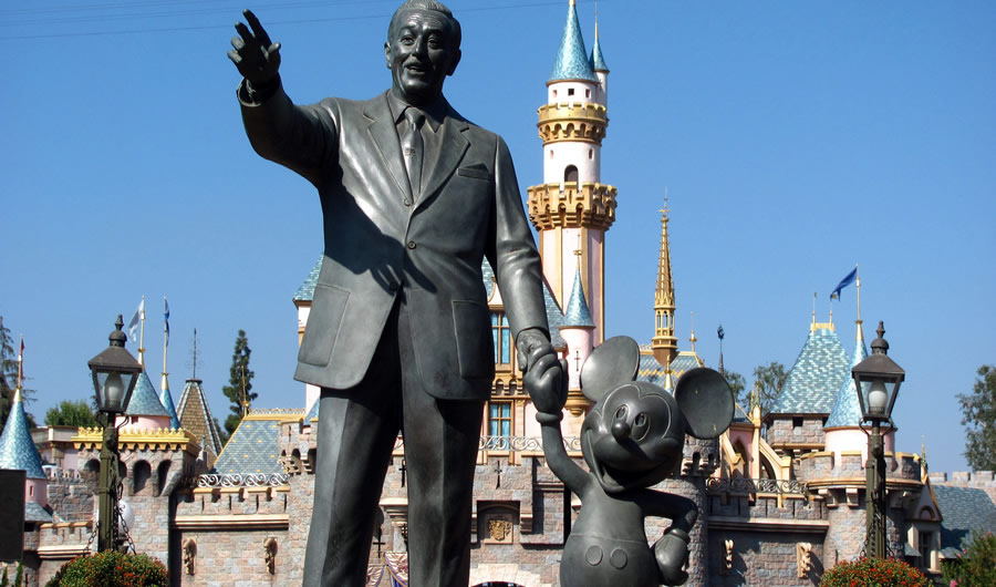| Tượng họa sĩ Walt Disney và chuột Mickey tại công viên Disneyland đầu tiên được xây dựng tại Anaheim, bang California (Hoa Kỳ). |