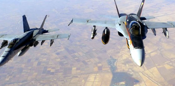 | Hai máy bay F-18E của Mỹ trong cuộc không kích các mục tiêu IS ở Iraq. Ảnh: AFO |
