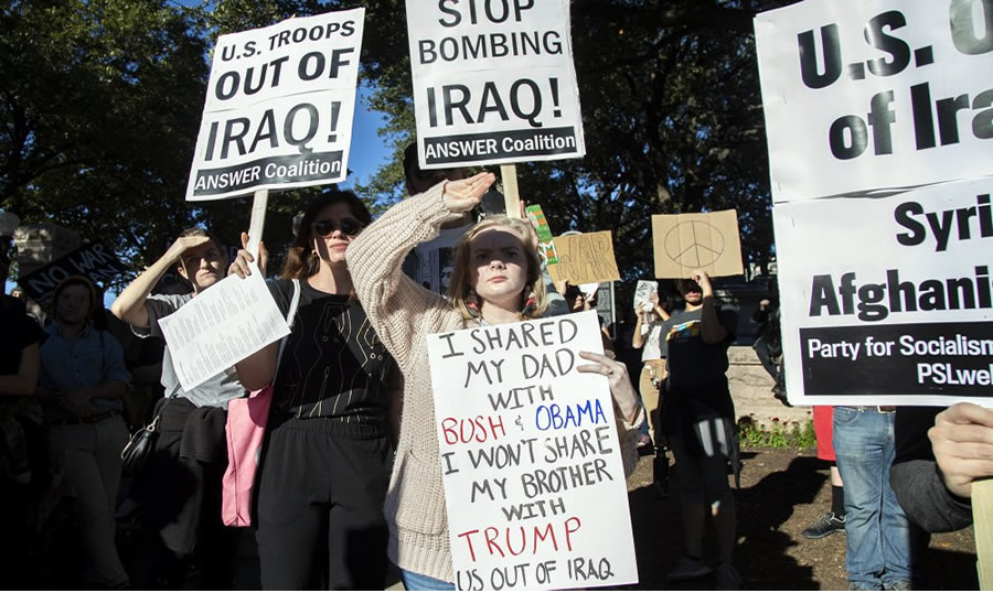 Người dân Mỹ xuống đường biểu tình ở Texas, phản đối khả năng xảy ra cuộc chiến mới ở Trung Đông. Ảnh: AP |