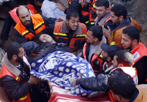 Sơ cứu người dân bị thương do tên lửa Israel nhằm vào Gaza. Ảnh: AP |