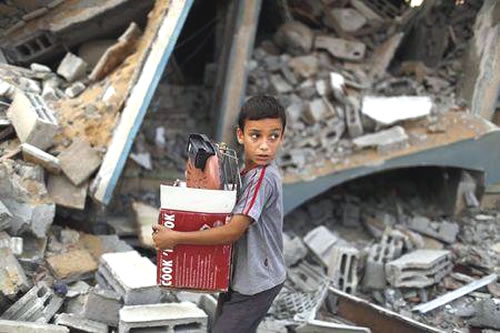 | Một cậu bé tìm những gì còn sót lại trong căn nhà đổ nát của mình sau khi bị Israel tấn công. Ảnh: Reuters |
