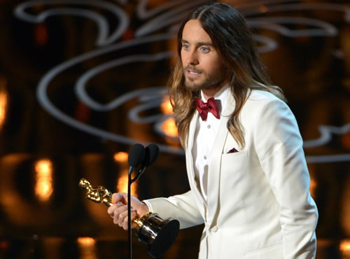 Nam diễn viên Jared Leto phát biểu cảm nghĩ trên bục vinh quang. |