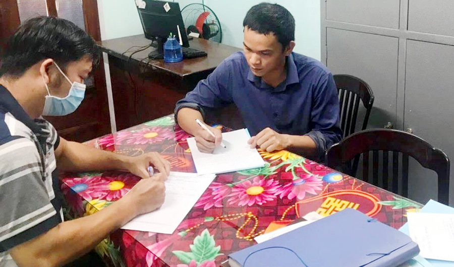 Lê Đình Hòa đến CAX Tam An đầu thú để hưởng sự khoan hồng của pháp luật. |