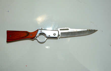 Đối tượng Trần Quốc Tú và con dao gây án của y. |