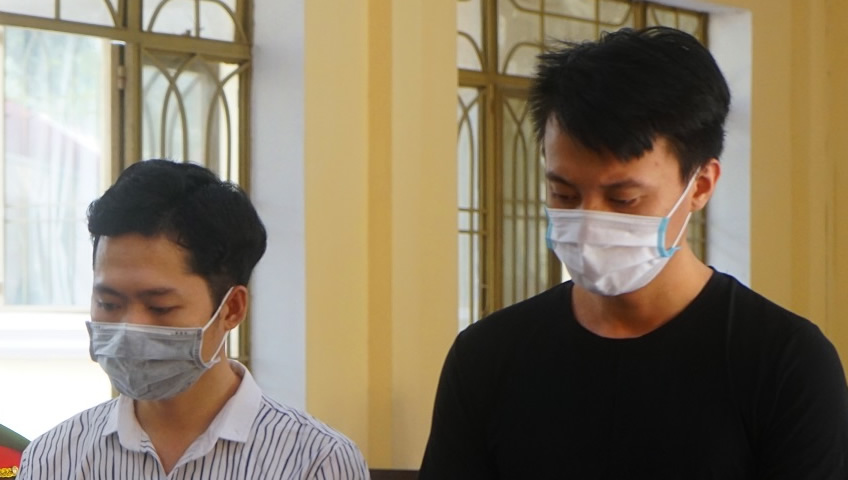 Bị cáo Thành và Quang tại phiên tòa. |