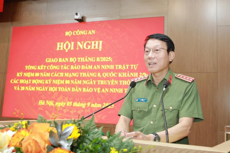 Ngày 5-9, Bộ Công an tổ chức Hội nghị giao ban tháng 8-2025; tổng kết công tác bảo đảm ANTT kỷ niệm 80 năm Cách mạng tháng Tám và Quốc khánh 2-9, các hoạt động kỷ niệm 80 năm Ngày truyền thống lực lượng CAND và 20 năm Ngày hội Toàn dân bảo vệ an ninh Tổ quốc. Đại tướng Lương Tam Quang- Ủy viên Bộ Chính trị, Bí thư Đảng ủy Công an Trung ương, Bộ trưởng Bộ Công an, dự và phát biểu kết luận Hội nghị.