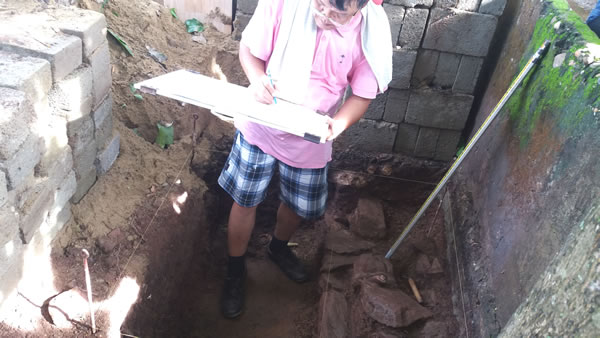 Phát hiện nền đá tại hố thứ 5 và mở rộng hố phụ cạnh bên cho thấy, nền đá xếp chồng lên nhau. |