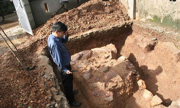 PGS.TS Bùi Văn Liêm, Viện phó Viện Khảo cổ học, người chủ trì cuộc thăm dò cho biết, tất cả 5 hố thăm dò đã được mở đúng theo trình tự, thời gian mà Bộ VH-TT & DL đã đề ra. Trong tất cả các hố, thì hố thứ 5 có nét đặc biệt so với các hố còn lại. Tại hố thứ 5, khi đào đến độ sâu khoảng 0,2 m; các nhà khảo cổ học phát hiện dấu vết gồm nhiều tảng đá nằm vuông góc với nhau, có hình dạng chữ L. Riêng đoạn cuối lớp đá có một lớp vôi tiếp nối, cùng với lớp đất lạ giống như cát vàng và sỏi. Ngay sau đó, Đoàn quyết định cho mở hố phụ sang cạnh nhà một hộ dân khác để tiếp tục tìm kiếm các dấu tích. Tại hố phụ này, Đoàn phát hiện nền đá xếp chồng lên nhau. Theo đánh giá của các chuyên gia khảo cổ tại hiện trường, nền đá ở hố số 5 cho thấy từng có sự xuất hiện của một kiến trúc lớn ở khu vực này. PGS.TS Bùi Văn Liêm, Phó viện trưởng Viện Khảo cổ học, nhận định việc đào thăm dò mới chỉ phát lộ nền móng của một công trình kiến trúc. Tuy nhiên, cần phải nghiên cứu tiếp thì mới có thể kết luận được đó là thành, tường hay biểu hiện của tường thành, vì vậy chưa nên kết luận vội vàng mà phải tiếp tục nghiên cứu.