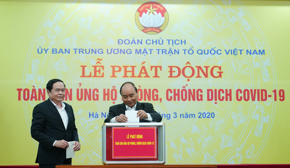 Ngày 17-3, Ủy ban Trung ương MTTQ Việt Nam tổ chức lễ phát động toàn dân ủng hộ phòng, chống dịch Covid-19. Buổi lễ được truyền hình trực tuyến tới 63 tỉnh, thành phố, Thủ tướng Nguyễn Xuân Phúc cùng khoảng 2.300 đại biểu dự lễ phát động.