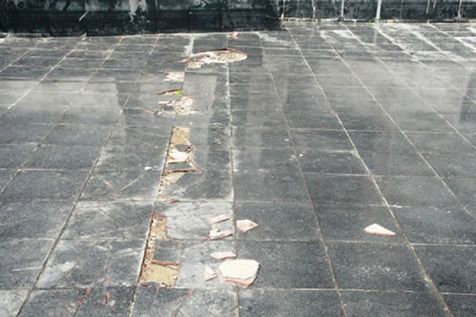 Nền gạch bị bong vỡ trước khi được sửa chữa. |
