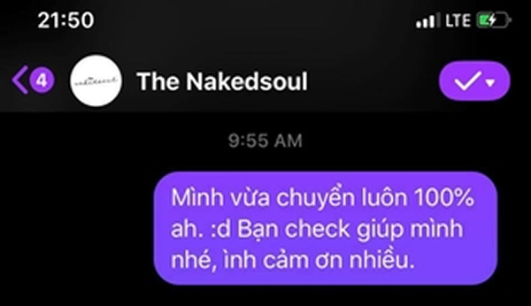 Tuy nhiên, sau khi Nam chuyển khoản, đại diện The Nakedsoul không trả lời tin nhắn hay phản hồi bằng bất cứ hình thức nào để xác nhận giao dịch của khách. Đồng thời, người này chặn tài khoản của Nam nên anh không thể gửi tin nhắn.
